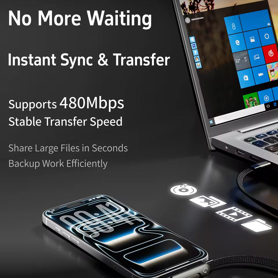 Charge Rapide & Sécurisée : Utilisation d'un câble de qualité avec une technologie de courant intelligent.